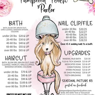 Bring your dog in for a bath and blow dry, nails, deshedding or a haircut (includes bath, nails, ear cleaning, haircut of your choice, bandana/bow, perfume).
